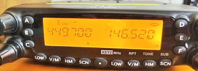 The TYT TH-7800 dual-band VHF/UHF mobile transceiver has a lot of features and makes a nice compact 50W/35W base station radio. Size is 5.7 (w) x 1.65 (h) x 7.5 (d) inches and weighs 2.2 lb. Note the large front panel display which shows the dual receiver frequencies. The independent volume and concentric squelch controls on the bottom left and right lets you monitor 2 frequencies at once on each band or on the same band. Receive frequency range on VHF is from the bottom of the aircraft band at 108 MHz, 2 meter ham band and other services to 180 MHz. UHF coverage is from 350 MHz to 520 MHz which includes the 70cm ham band. The frequency can be varied by rotating the knobs on the upper left or right side, or for the selected MAIN side, by the up/down switch on the top of the mic, or using the mic keypad. The TH-7800 can be programmed with up to 809 memory channels either using CHIRP from your computer or manually from the front panel or mic. Short pressing the "V/M" button on each side of the front panel or the "P2" button on the microphone on the selected "MAIN" side, toggles between setting a frequency in the VFO frequency mode, or stored frequency in the Memory channel mode. 50 Watts transmit power on 146 MHz and 35 Watts on the 446 will let you work just about any repeater you can hear and more than enough to talk to those with hand held radios on simplex. But if you don't need so much power, you can set the output power to 20W, 10W or 5 W output on either band by short pressing the respective sides "LOW" button on the front panel or "P4" on the microphone for the selected transmit "MAIN" side. The radio runs on the nominal 13.8Vdc at up to 8.5 Amps in high power transmit and 1/2 Amp in receive. Which side you use for transmitting can be selected by short pushing the respective upper left or right side frequency knob or toggle the microphone "P1" button. This selects the "MAIN" side as indicated on the top row of the display. You can run cross-band duplex or repeat with this radio which means you can transmit on one band and still receive on the other band at the same time. In Cross-band repeat mode, you can use your base station radio with its better antenna and power with your hand held radio if in range.