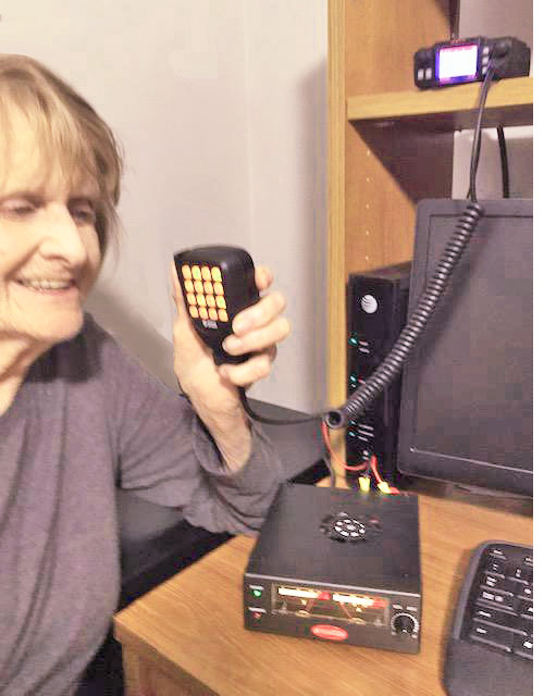 Walkie Talkie - The Baofeng UV-5R antenna has a SMA Female connector. Unscrew the antenna and either screw in a SMA Female to UHF Female adaptor into the radio, or a short flexible adaptor cable to take a lot of mechanical force off the small connector from the large antenna coax. Dress and fasten the coax so that the walkie talkie does not move out of the charger. The charger can be velcro'd to the desk or shelf. To make operating easier, a speaker mic can be plugged in.