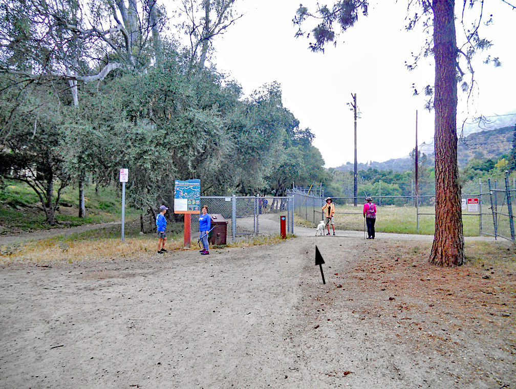 Step over the bar on the right side of the gate and enter the Monrovia Hillside Wilderness Preserve. Maria was instrumental in getting the city to lower the bar so mountain bikers and seniors could get over easier.