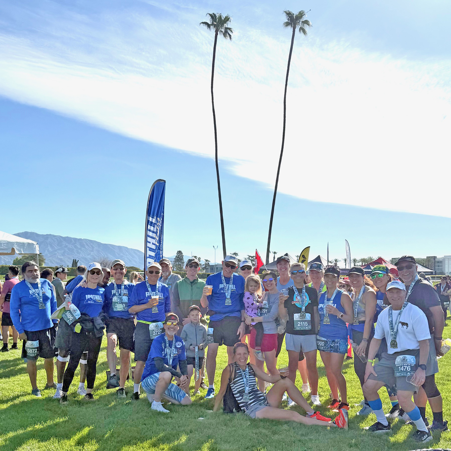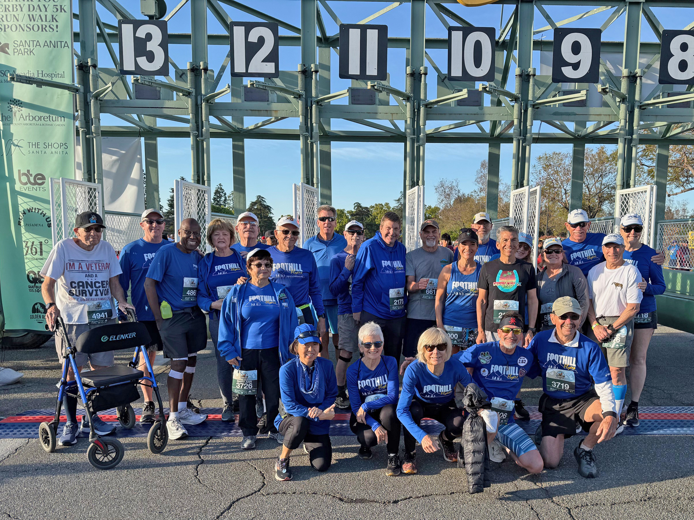Foothill Flyers Race Reviews Santa Anita Derby Day 5K 1st or 2nd Saturday in April, Arcadia, CA, 8:00 AM Start by pace groups. 2025 Results App and info click on Derby Day above. Click on TEAMS and scroll down to Foothill Flyers - The club Team can get $5 off each entry once 10 signups are reached. Until the Thursday before, you can also register at the Run With Us Store, 235 N Lake Ave in Pasadena. You can also sign up on the Friday before the race at the Santa Anita Mall (2-6pm) or race day from 6:30am.