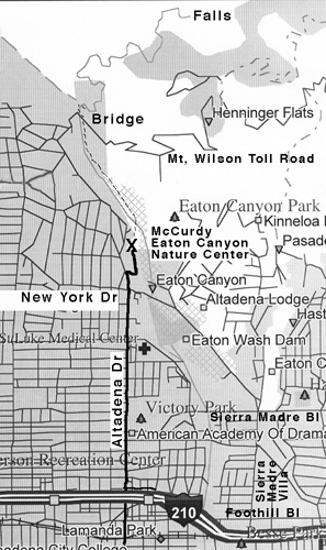 Eaton Canyon Falls Trail, Pasadena This is our 4th in the series of last Wednesday of the month trail runs and typically run in July. The start is from the Eaton Canyon Nature Center in Pasadena. Going north, the Nature Center entrance is off of Altadena Dr. just past New York Dr. about 50 yards on the right - Thomas Map 536-E7. From the 210, go north on Altadena Dr. Park at the far North end of the Eaton Canyon Nature Center parking lot if you can. Everyone should be able to make it to the falls before the turn around at 7:10 PM. I suggest wearing an old pair of trail shoes and not bothering to attempt rock hoping across the stream crossings. Bring another pair or sandles to change into after the run if you wish. After the initial stream crossing about 100 yards from the start, keep the stream close on your left for about a mile until you cross under the Mt. Wilson Toll Road bridge. There is a lot of poison oak up slope from the stream as the trail narrows before the bridge so stay close to the stream. Note the slide area before the bridge that took out the Toll Road. Just north of the bridge there are a number of stream crossings for 3/4 mile to the falls. Total distance to the falls is just under 2 miles. Some links: Jummping in the falls, A hike to the falls, Henninger Flat |