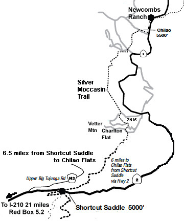 Foothill Flyers Trail Runs Silver Moccasin Trail This is a good training run in spring or fall in the San Gabriel Mountains behind Mt. Wilson. Round trip is a little over 13 miles and can include a food break at Newcomb's Ranch. An Adventure Pass is required to park at Shortcut so it is best to car pool from from the junction of the 210 and 2 by meeting at the corner of Milmada Dr and parking on Flanders Rd - map. The drive to the Shortcut Saddle trail head will take you about 45 minutes as we have experienced working an aid station there for the Mt. Disappointment 50k - map and directions. Park on the north side near the trail head. Once on trail, follow all the Silver Moccasin Trail signs. Chilao to Shortcut Saddle Trail Runners cross the concrete wash and re-join the Silver Moccasin Trail via a left turn uphill. After 0.6 miles, a paved road is crossed, and runners follow single track South for another 0.8 miles, until dumping out on a fire road. You’ll turn left on this fire road and continue South for 1.2 miles to a T junction with another fire road. Again, you’ll bear left and after only 0.1 mile, turn right to get back on the single track as it crosses a creek bed. After following the single track for 0.3 miles, a hard left is taken at another junction, and runners traverse winding single track for 0.6 miles to a hard right. Runners cross a road after 0.2 miles, and proceed up another 0.2 to a final paved road crossing (Vetter Mountain Road) with views of the Shortcut Aid station 2.8 miles away and Mt. Wilson looming in the distance. From the road, it’s 2 miles of technical single track down to cross a creek bed, and then a relatively quick 500’, 0.8 mile climb up to the Shortcut Aid Station, mile 51.3, elevation 4,760’. You’re over halfway there! |